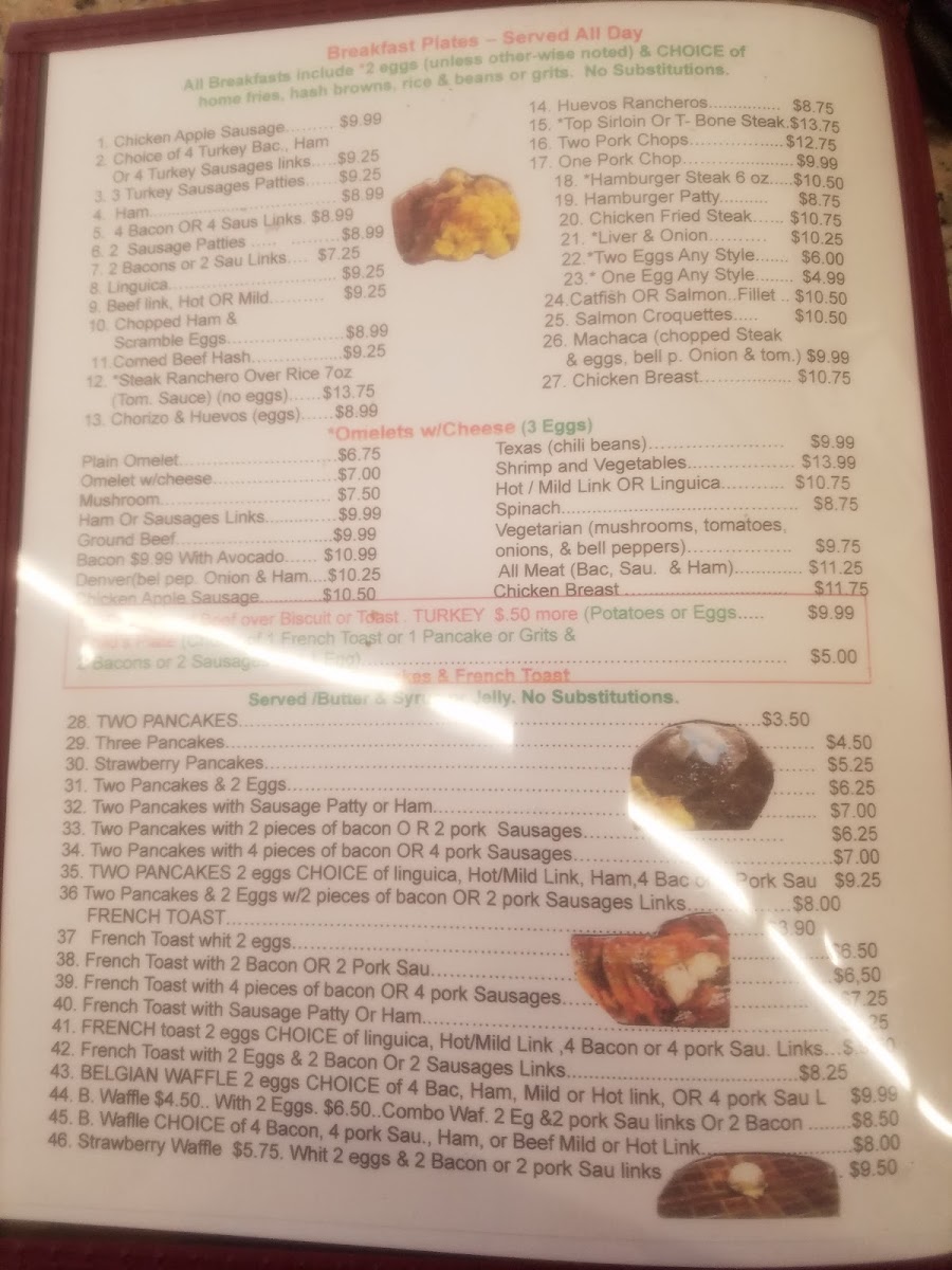 Belgian Waffle 2 Eggs Choice Of 4 Bac, Ham, Mild Or Hot Link, Or 4 Pork Sau